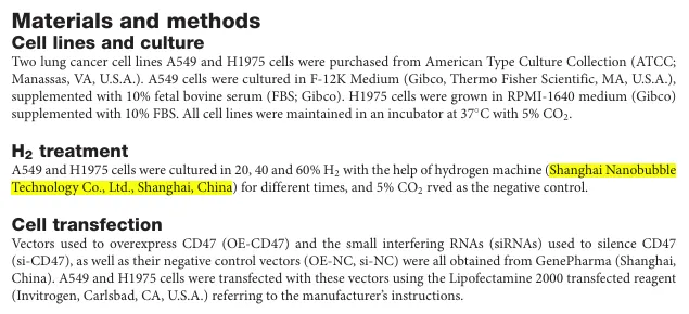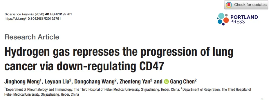 原文題目:Hydrogen gas represses the progression of lung cancer via down-regulating CD47 (氫氣通過下調(diào)CD47抑制肺癌進(jìn)展)